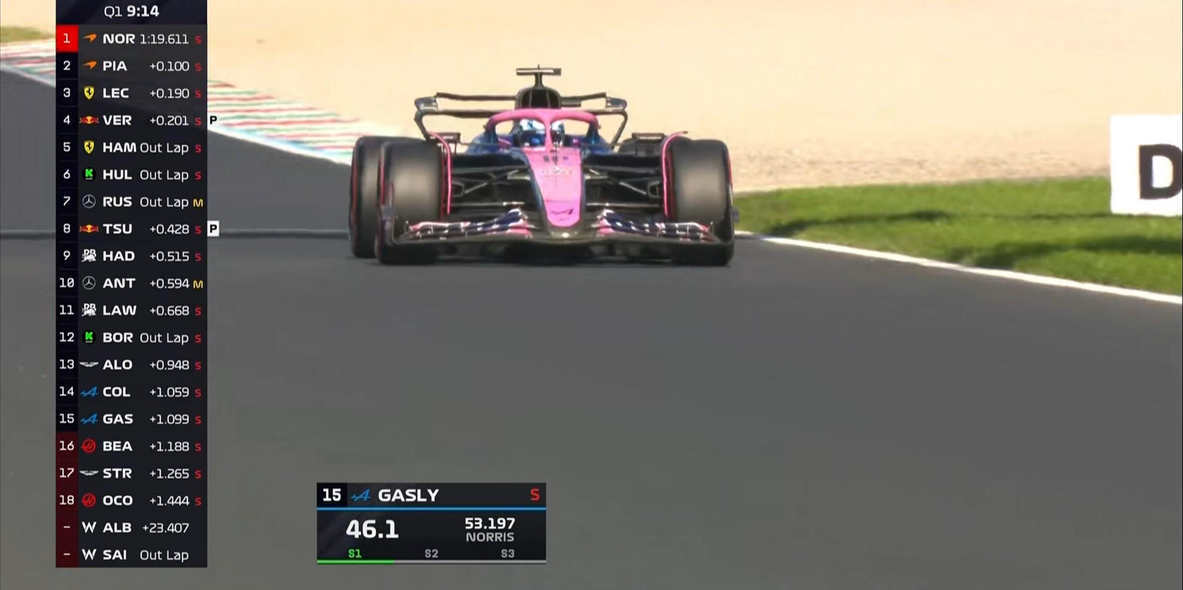 Q1被淘汰车手:哈贾尔、斯特罗尔、科拉平托、加斯利、劳森