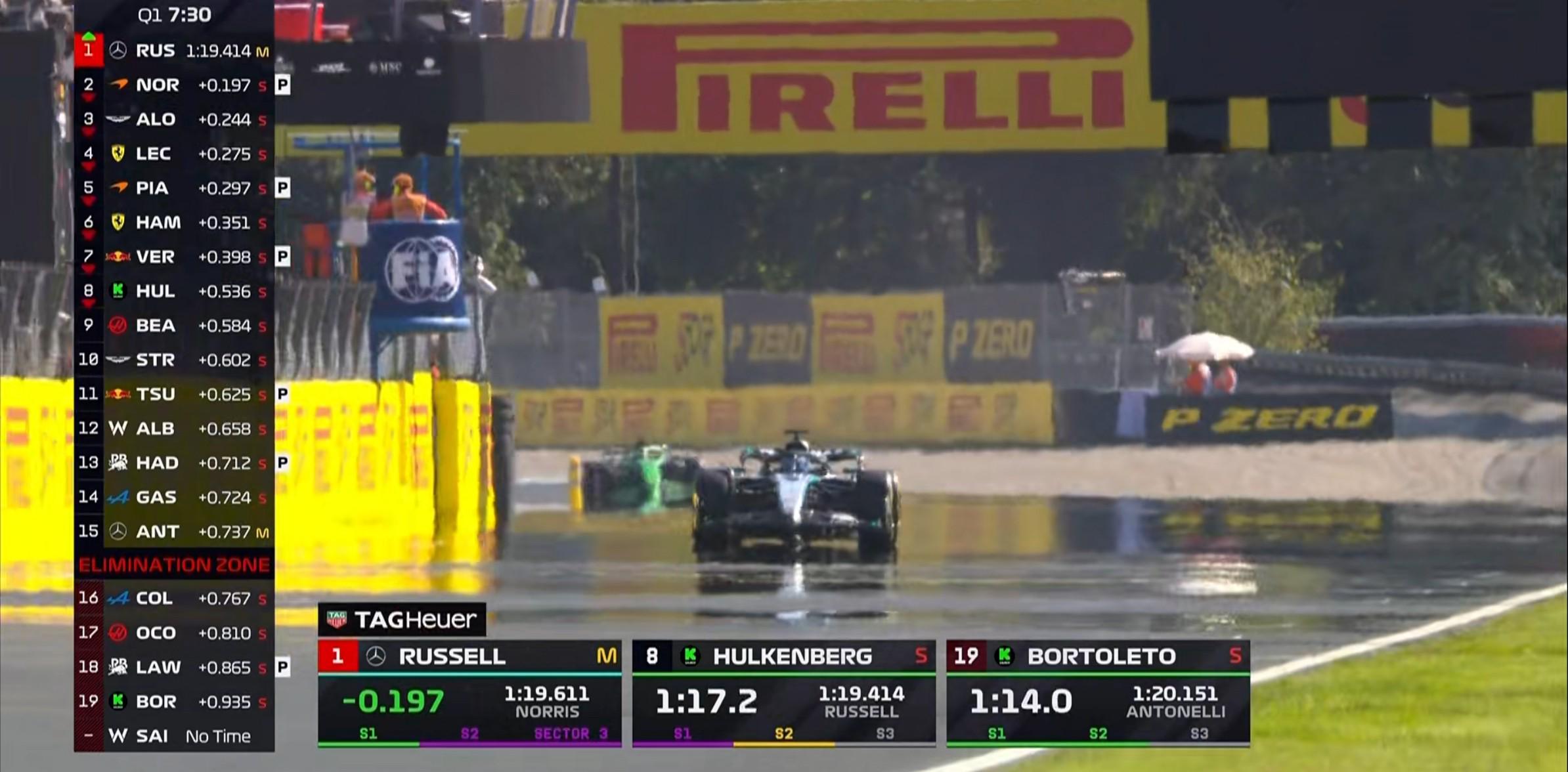 安东内利报告赛车的平衡还不错,但在抓地力方面有所欠缺,他目前处在淘汰区;